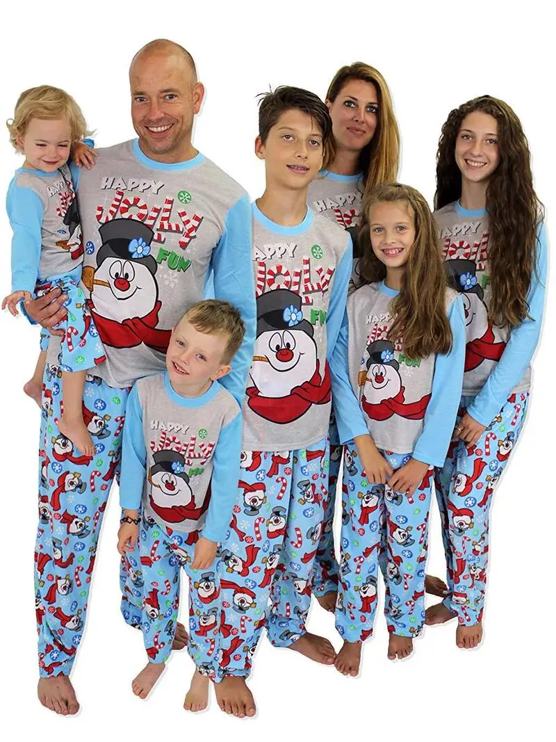 Семейная Рождественская Пижама для родителей и детей, костюм для взрослых и детей с изображением снеговика, оленя, домашняя одежда с мультяшным принтом, семейная Одинаковая одежда