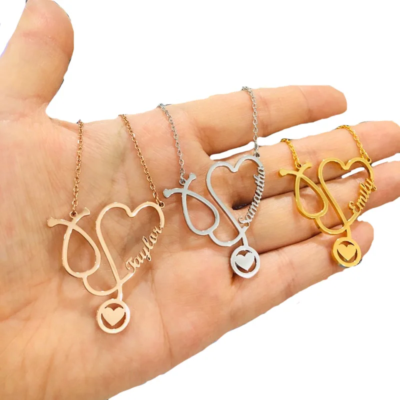 Медицинский стетоскоп, именное ожерелье, персонализированное ожерелье в форме сердца, ЭКГ, ювелирное изделие для врача, подарок из нержавеющей стали