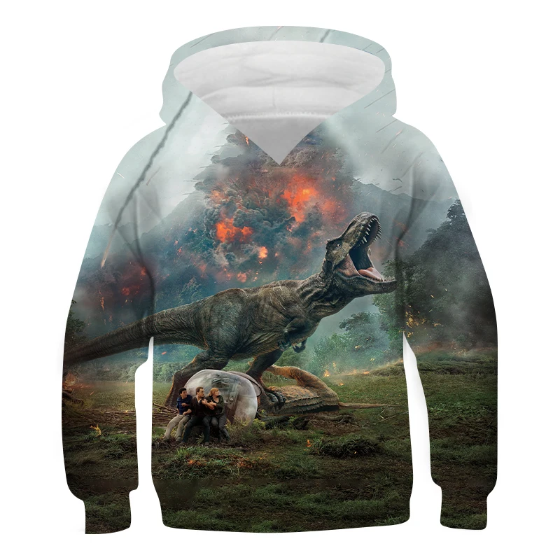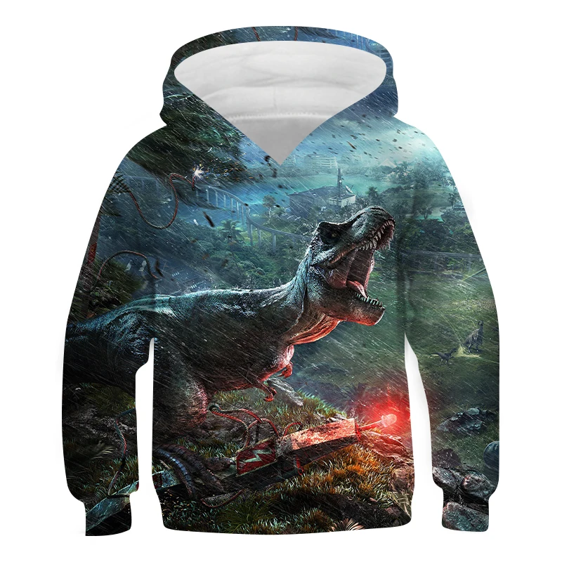 Детские толстовки с динозаврами, толстовка с 3D принтом, худи в стиле Харадзюку, Парк Юрского периода, осенняя уличная одежда для мальчиков и девочек, Повседневная аниме одежда