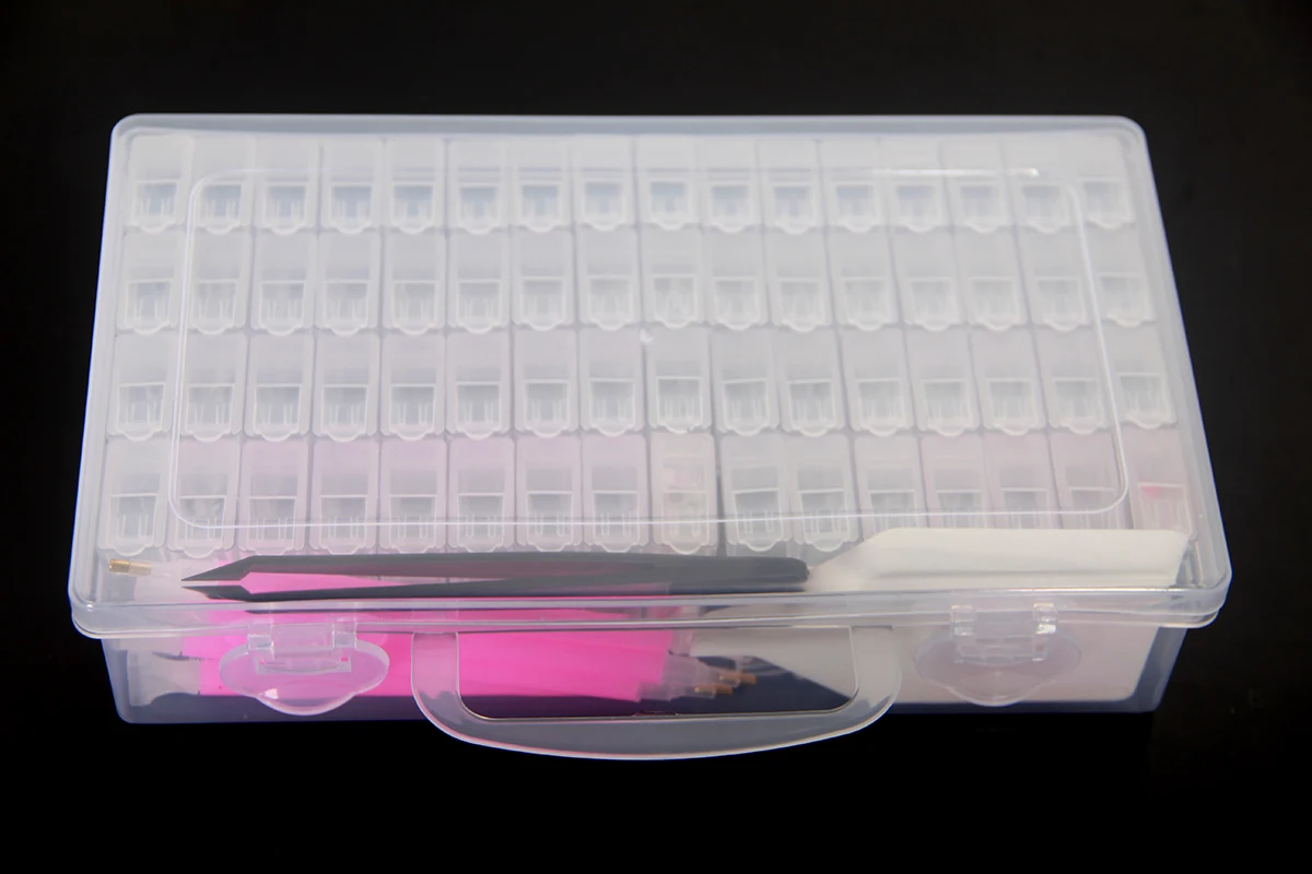 Различные виды применения-очень подходит для хранения алмазов разных цветов. Используется для хранения мелких предметов, таких как Алмазная вышивка, бисер, аксессуары для ногтей, каменные бусины, стразы, семена и т. д.