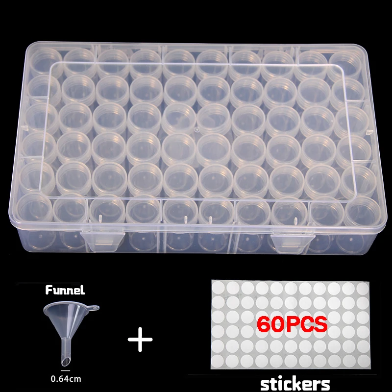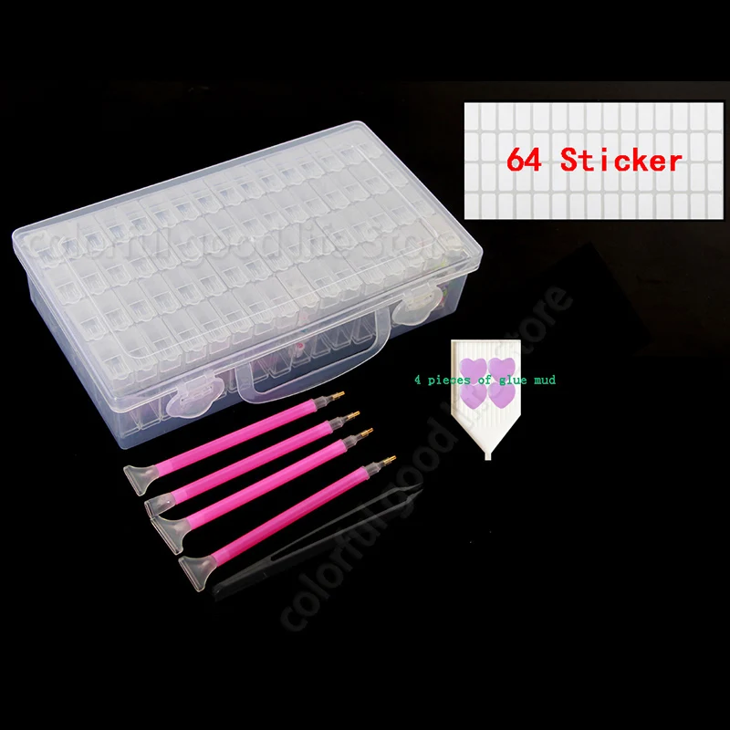 64 независимых слота дизайн-5D инструменты для вышивки картин со стразами, включая Большую пластиковую коробку и 64 независимых мини-слота. Каждый мини-слот имеет отдельную крышку, чтобы обеспечить ее закрытие, и крышка отстегивается. Если алмаз застревает во время заливки, вы можете удалить всю крышку. 64 небольших слота могут держать достаточно алмазов разных цветов.