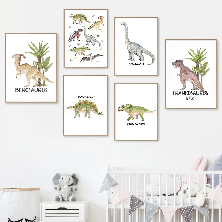 Акварель мультфильм Динозавр облако питомник стены искусства холст ...