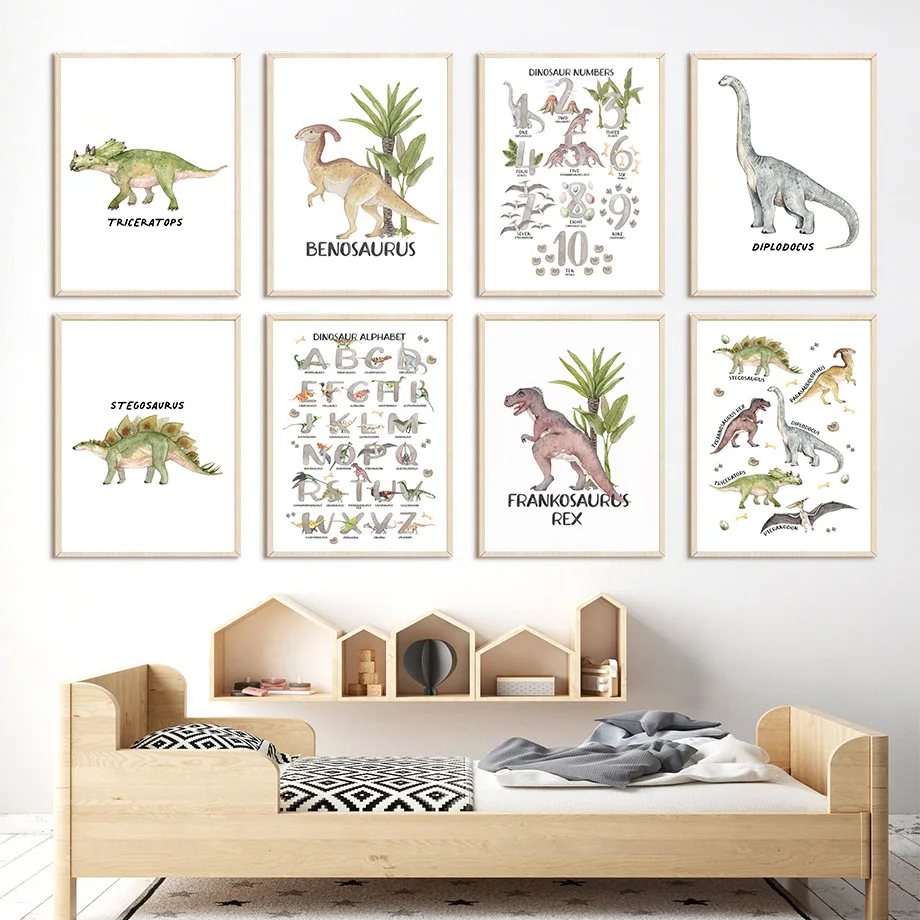Алфавит с цифрой динозавр Радуга Детская настенная живопись холст с...