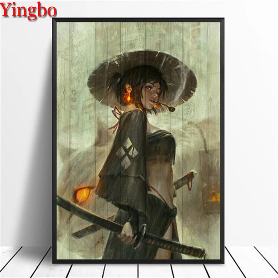 Японское искусство геша Swordwork самурайская Алмазная картина полностью квадратная круглая дрель 5D Diy Алмазная вышивка Алмазная мозаика продажа