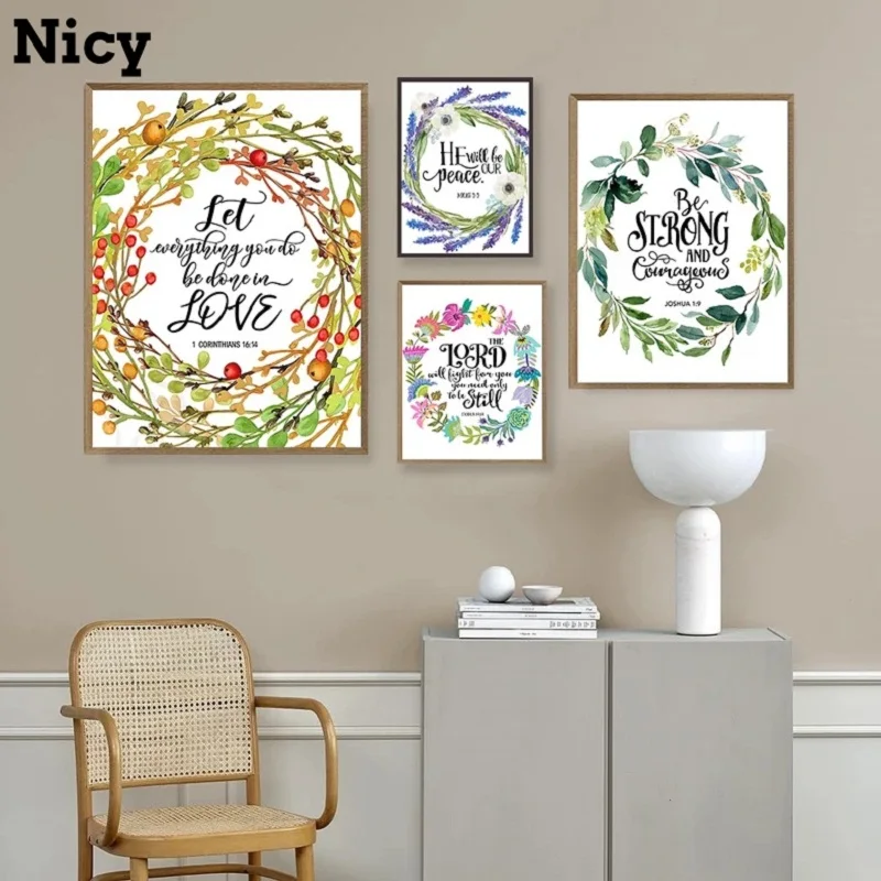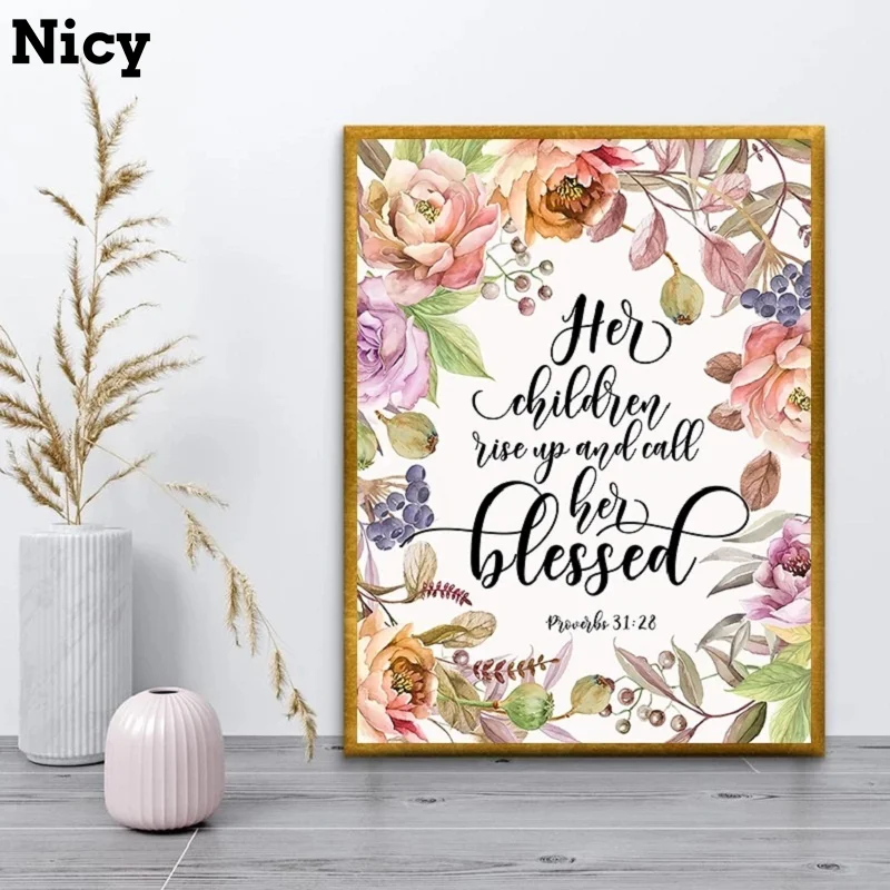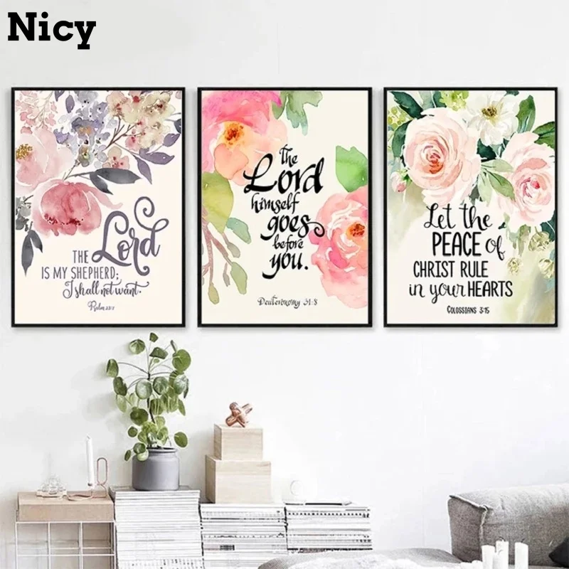 Цветочные плакаты, акварельные художественные принты на холсте, христианское искусство, Бог, цитата, живопись, розовая Библия, тексты, картина для детской комнаты, настенное искусство, Декор