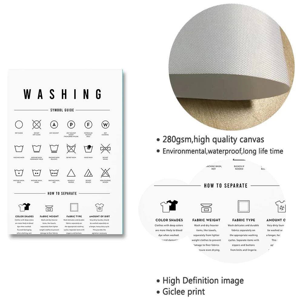 Настенный декор, стирка, символы, руководство, стирка, сушка, комна...