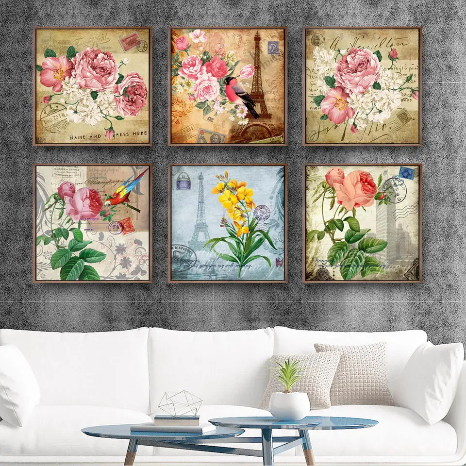 Домашний декор, картина, печать на холсте, настенные картины, квадратный плакат, без рамы, рисунки назад в древнюю Европу, цветы