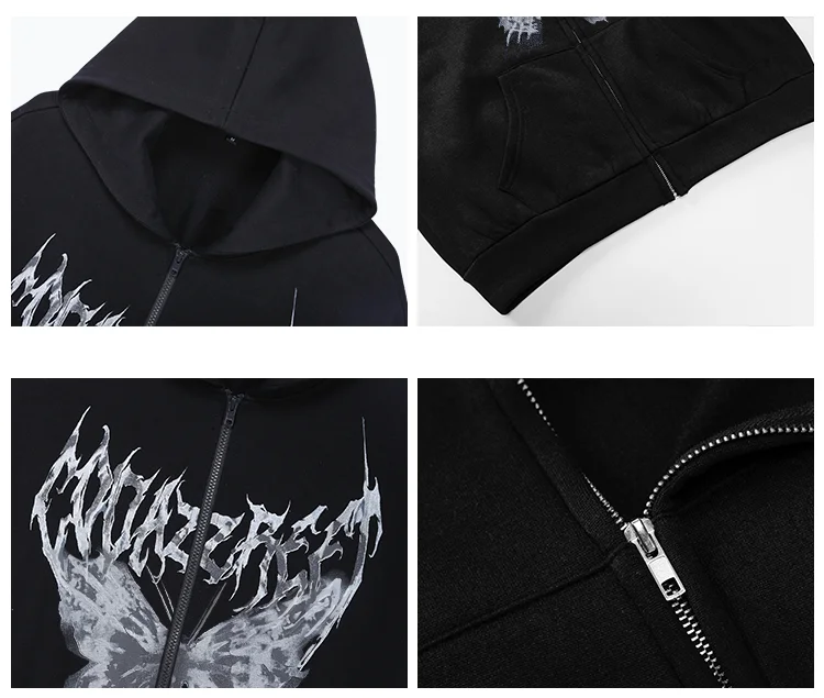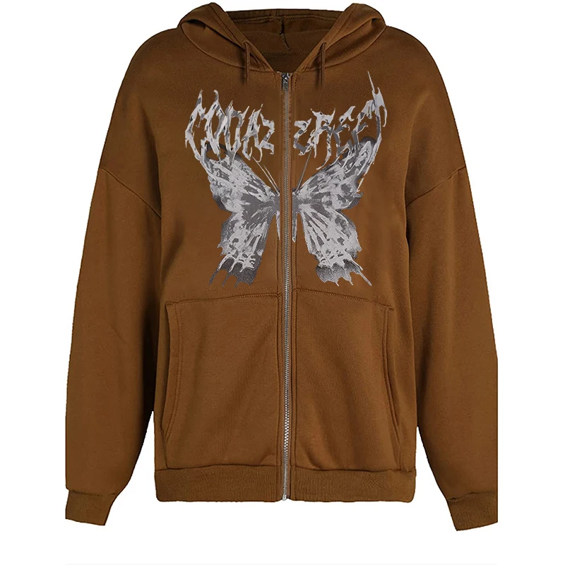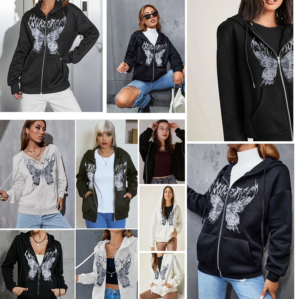 Осенний Женский свитшот с капюшоном в стиле Харадзюку Y2K, свободные женские толстовки на молнии с длинным рукавом и принтом бабочки, пальто для женщин