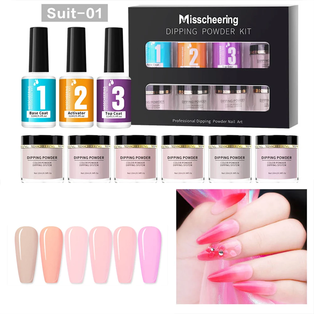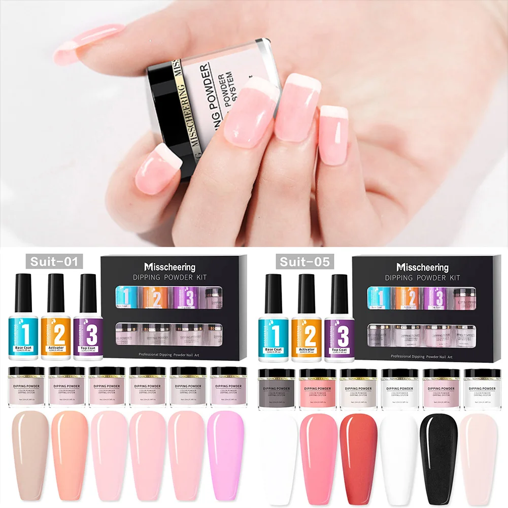 Dip Powder Набор для ногтей Французский стиль Погружная пудра с базовым верхним слоем Активатор Новый французский порошок для ногтей Маникюр для маникюрного салона DIY