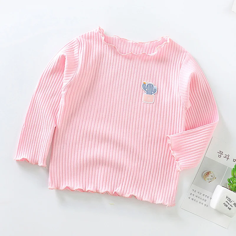 2021, одежда для маленьких девочек, рубашки для девочек, Однотонная рубашка с длинным рукавом и круглым вырезом, детская блузка, хлопковые детские топы, одежда для девочек