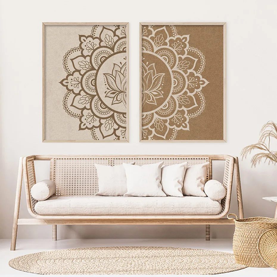 Настенная картина с бежевой мандалой, абстрактный цветочный узор, декоративный постер в богемном стиле, Картина на холсте дзен, бохо, шикарные подарки, Настенный декор