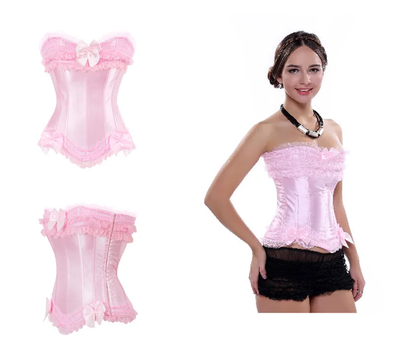 NameLace up corsets bustiers top sexy satin overbust corset striped ladies satin halloween big size red black pink korsett