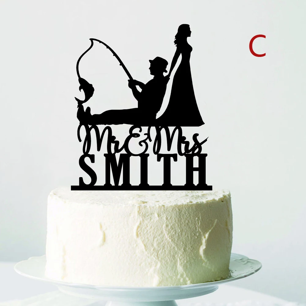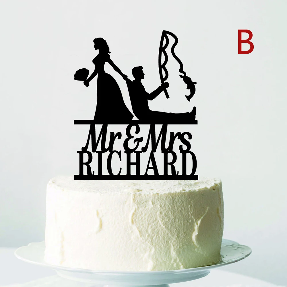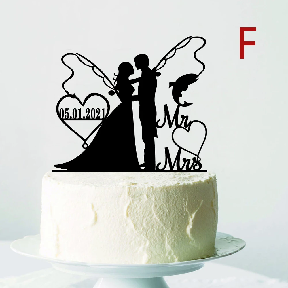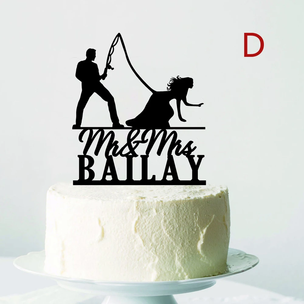 Персонализированная рыбалка, свадебный торт, Топпер Mr и Mrs, деревянная акриловая индивидуальная фамилия или дата, Свадебная вечеринка, украшение на годовщину
