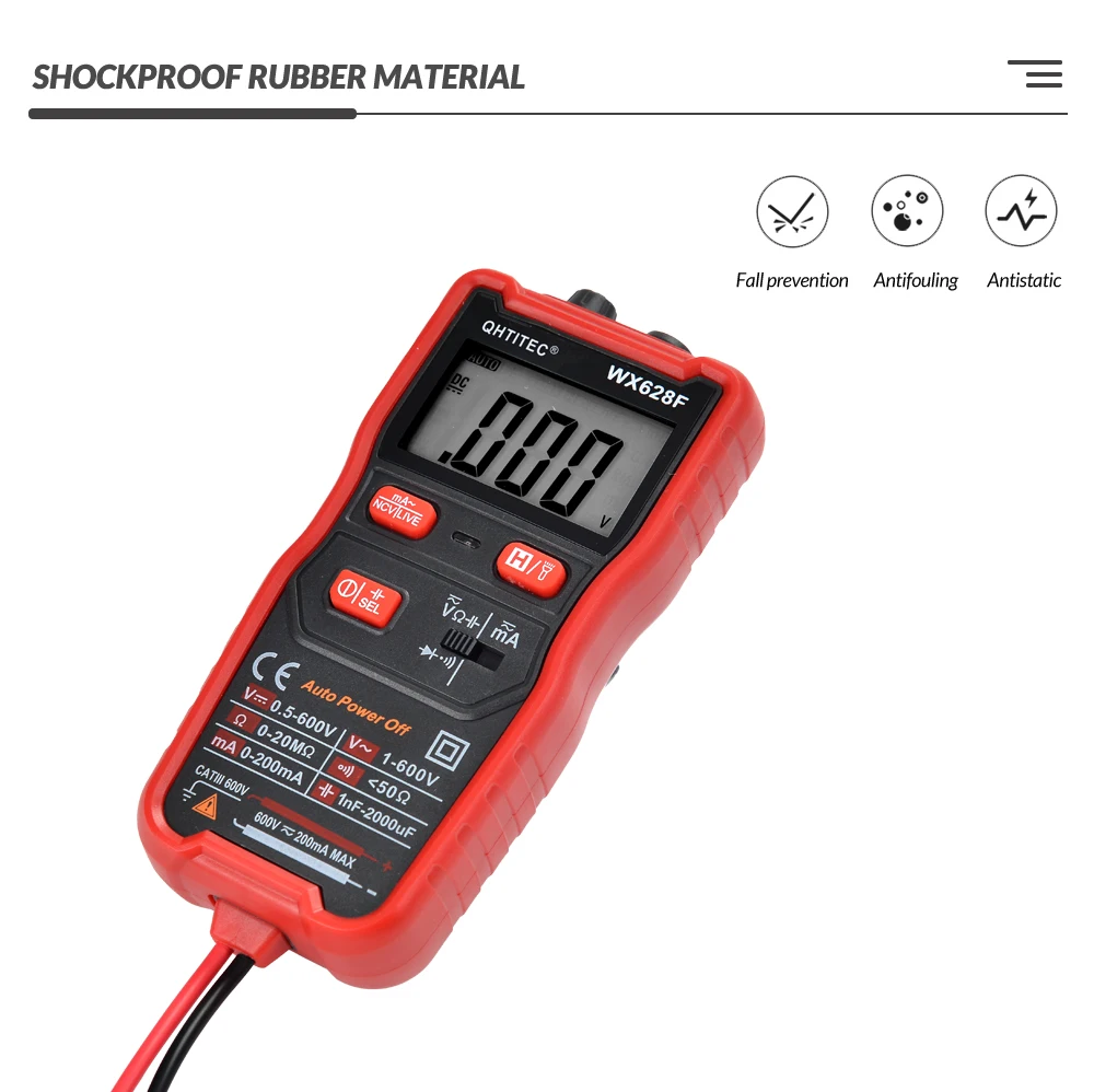 Интеллектуальный цифровой мультиметр с автоматическим выбором диапазона амперметр постоянного и переменного тока Вольтметр 3 в 1 тестер конденсатора автоматический мини-мультиметр WX625T WX628F