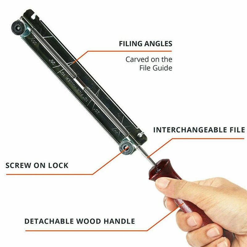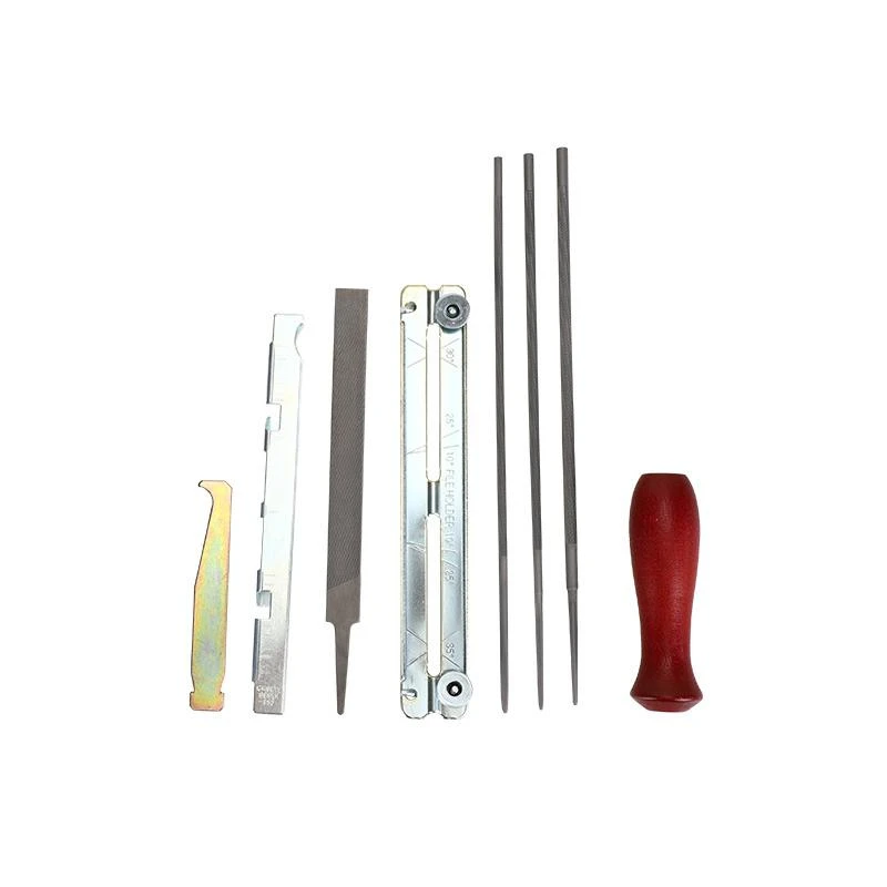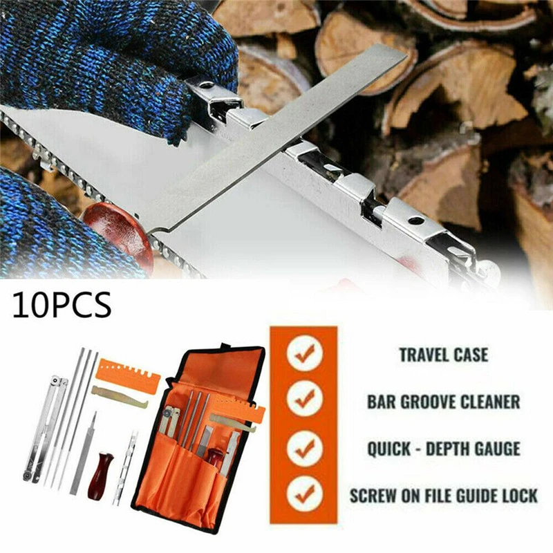 10 шт.компл. профессиональный шлифовальный комплект цепи бензопилы круглаяПлоская направляющая для пилки набор инструментов для заточки пилки + ручка из твердой древесины