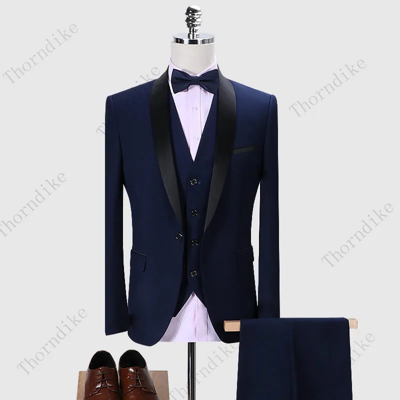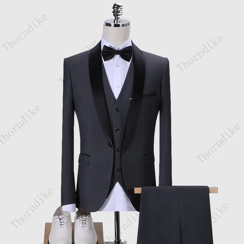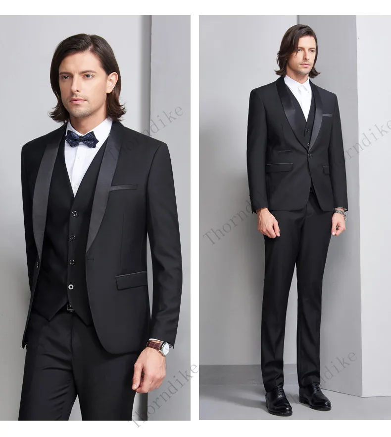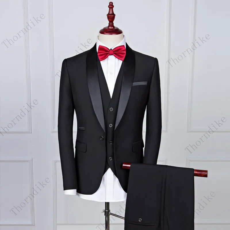 Мужские костюмы Thorndike из трех предметов, черные повседневные мужские костюмы в стиле ретро с лацканами для официальной свадьбы (Блейзер + брюки + жилет)
