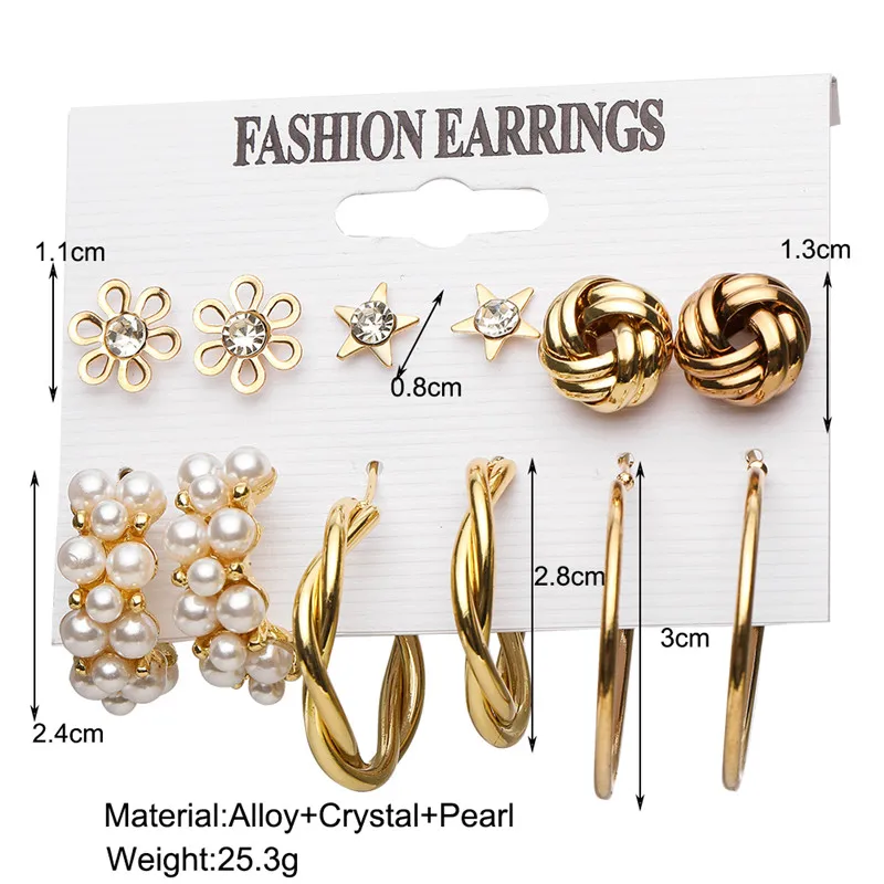 Модные металлические жемчужные серьги-гвоздики Комплект сережек для...
