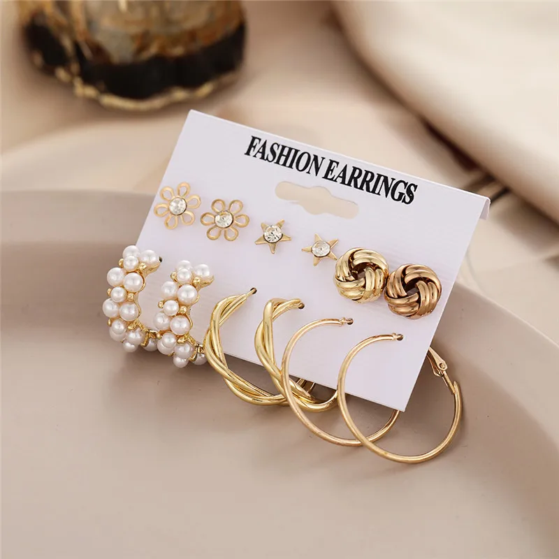 WUKALO, модные золотые серьги-кольца с жемчугом, Комплект сережек д...