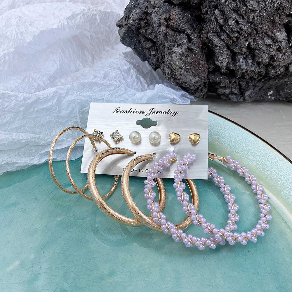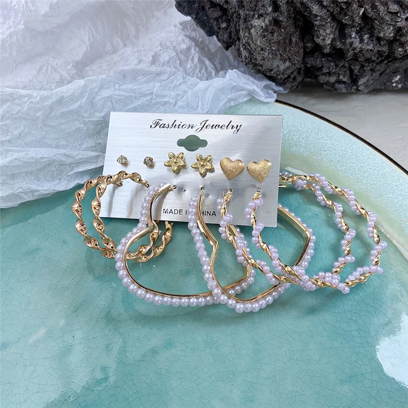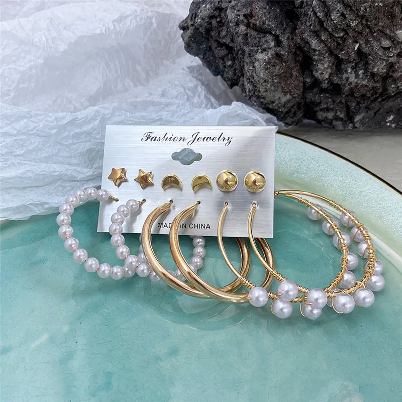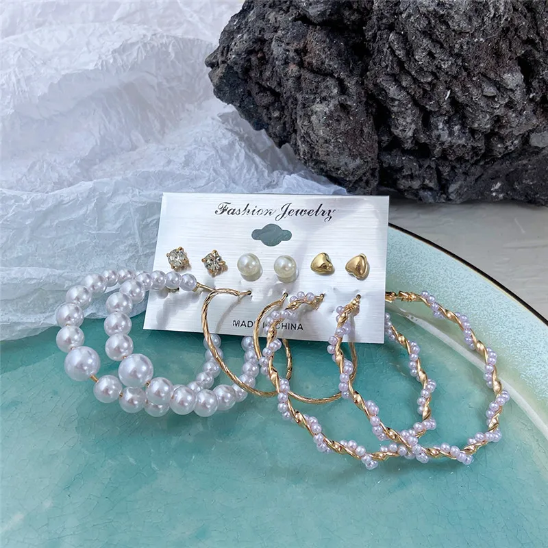 Винтажные серьги-кольца с большим жемчугом, набор для женщин, модны...