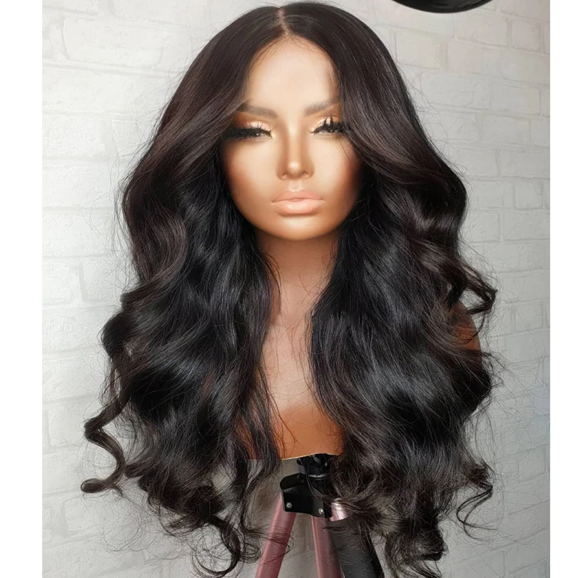180% Плотность 26 дюймов длинный волнистый кружевной передний парик Синтетический для черных женщин предварительно выщипанные длинные термостойкие Повседневные детские волосы