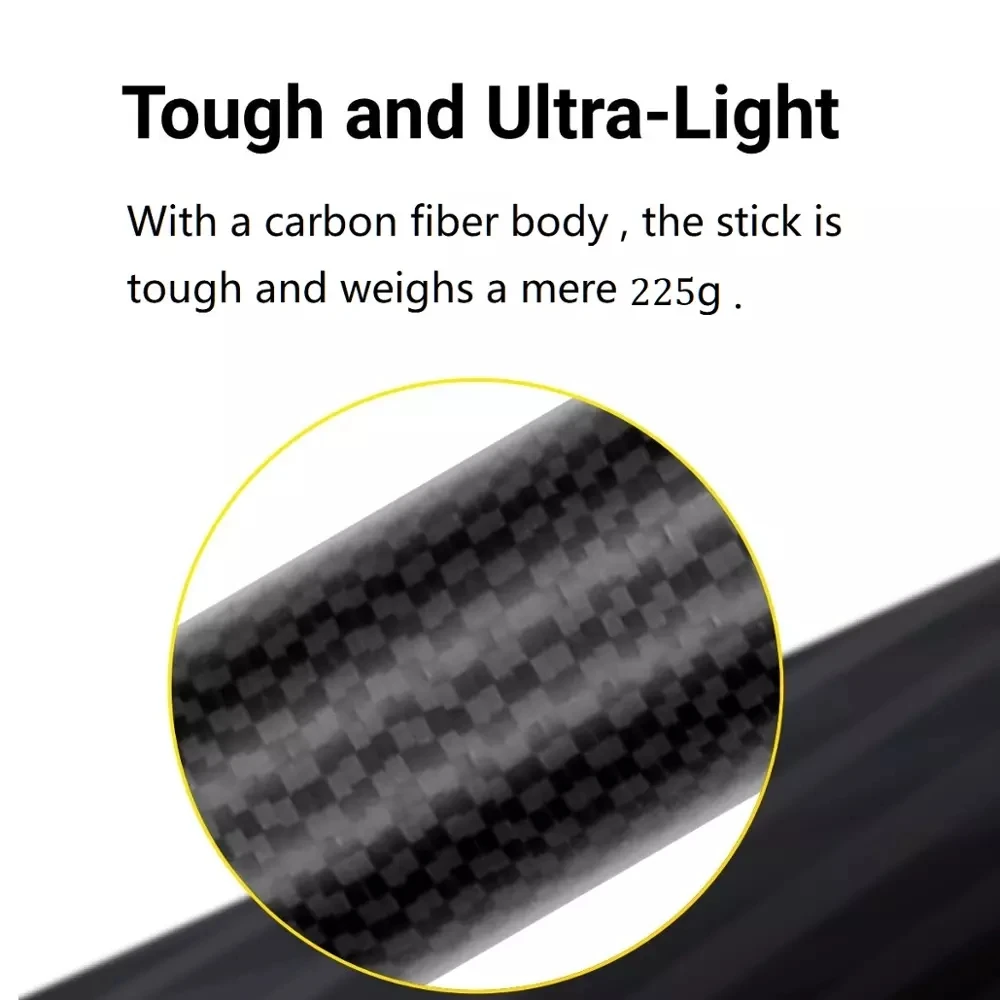 2. С корпусом из углеродного волокна, палка жесткая и весит всего 225 г.