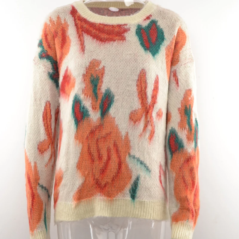 Женский свитер с круглым вырезом, вязаный пуловер большого размера, модные повседневные топы с длинными рукавами, уличная одежда 2021