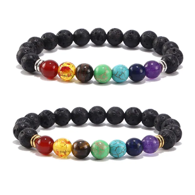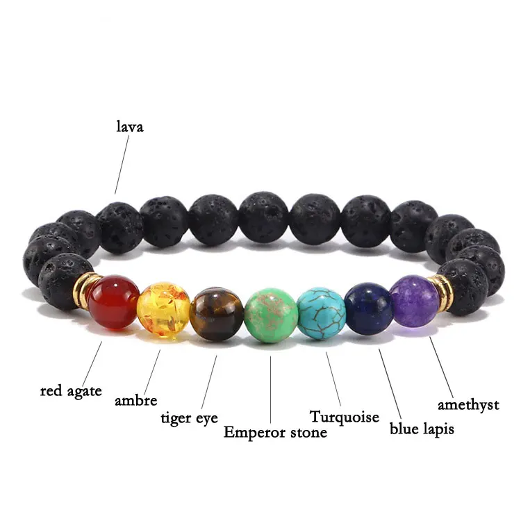 Браслет с 7 чакрами из лавового камня, 8 мм, с бусинами