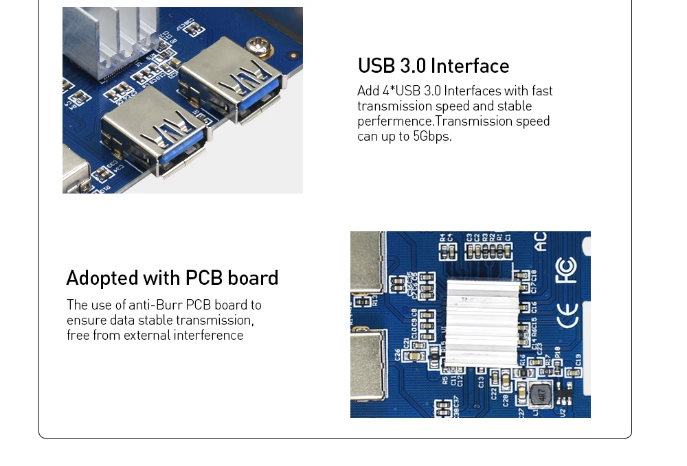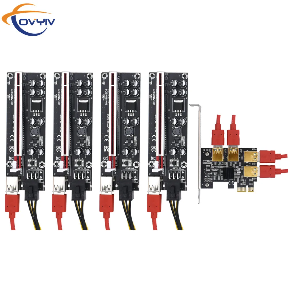 Карта расширения COVYIV 009S, PCIE Express от 1x до 16x, адаптер PCI-E от 1 до 4 USB 3,0, слот PCIe, карта множества портов для майнинга биткоинов BTC