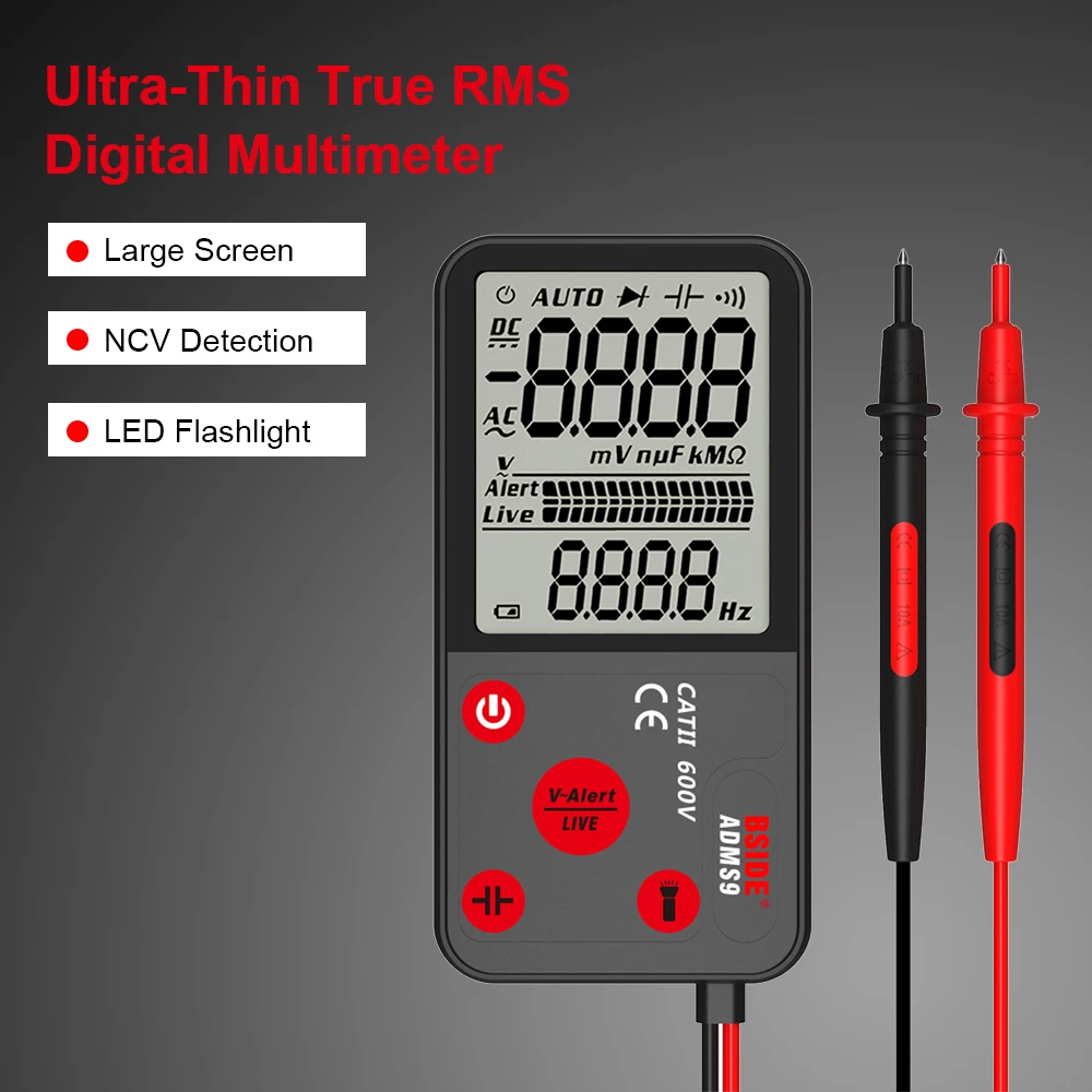 Тестер напряжения BSIDE ADMS7, цифровой мультиметр с большим ЖК-дисплеем 3,5 дюйма, 3-строчный дисплей, TRMS 6000 отсчетов, DMM с аналоговой гистограммой