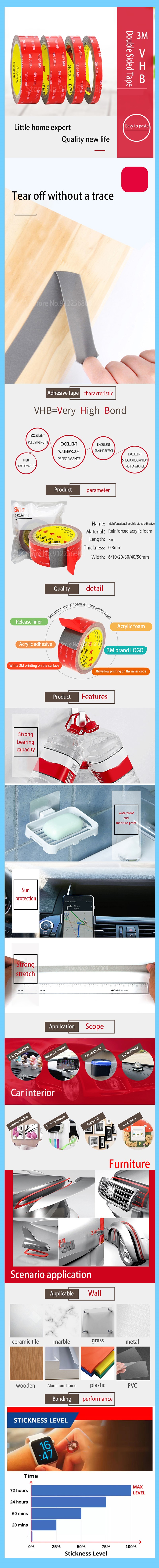 Двухсторонняя мощная клейкая акриловая лента 3M VHB для автомобиля, дома, сильная клейкая лента, устойчивая к температуре, водонепроницаемая, для офисного декора