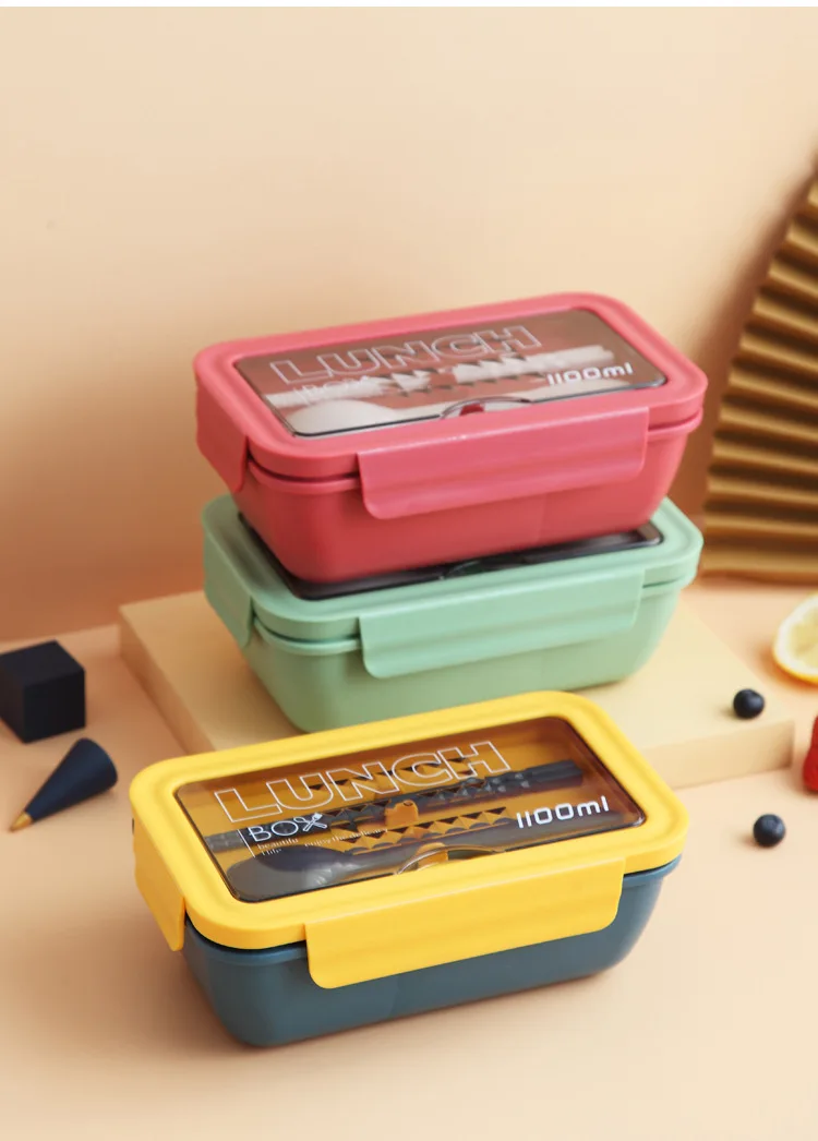 1100 мл Ланч-бокс для микроволновой печи, портативный 2-уровневый пищевой контейнер, здоровый Ланч-бокс, Ланчбокс с столовыми приборами