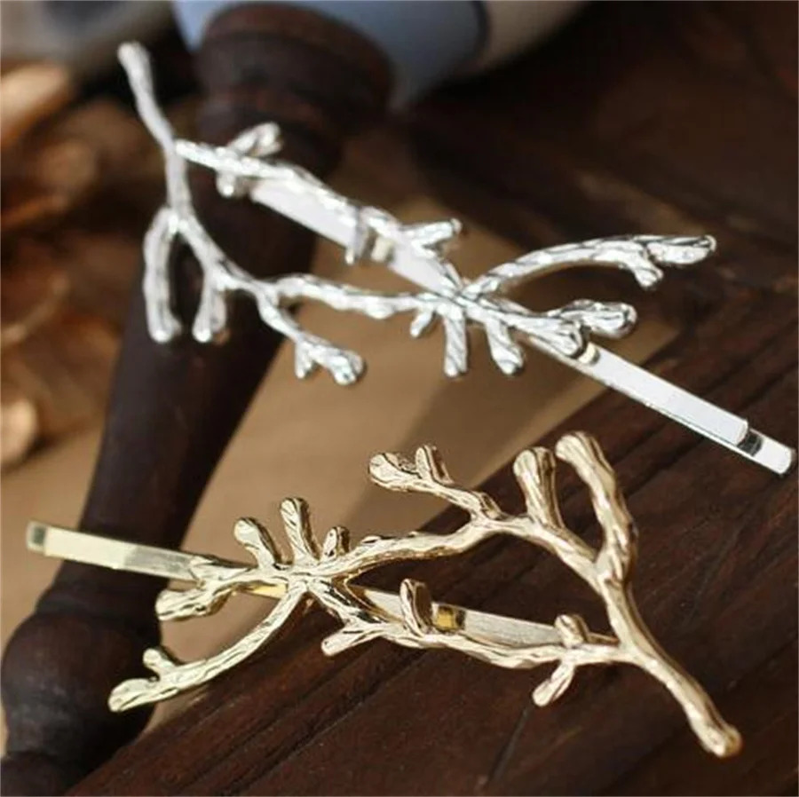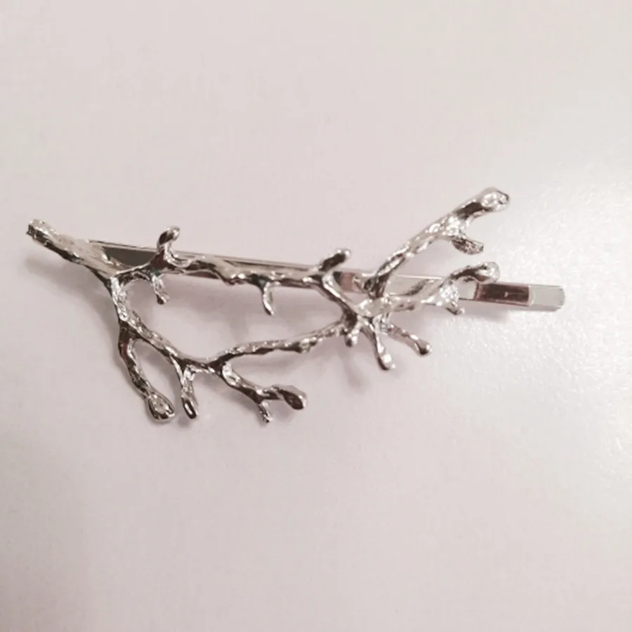 Новинка, Винтажная заколка для волос золотого и серебряного цвета с веткой дерева, шпилька из сплава для девочек, модная шпилька для волос, элегантные женские аксессуары для волос