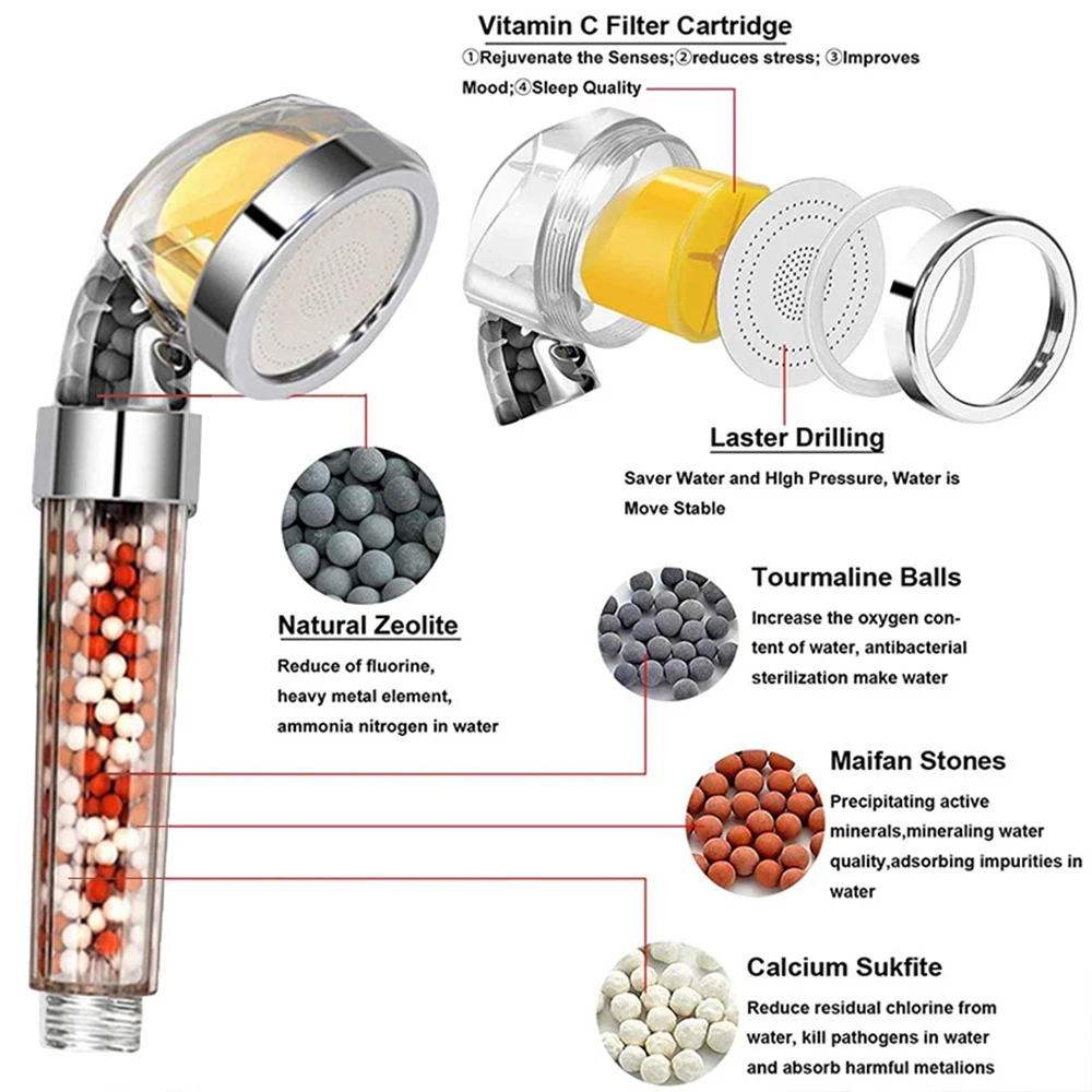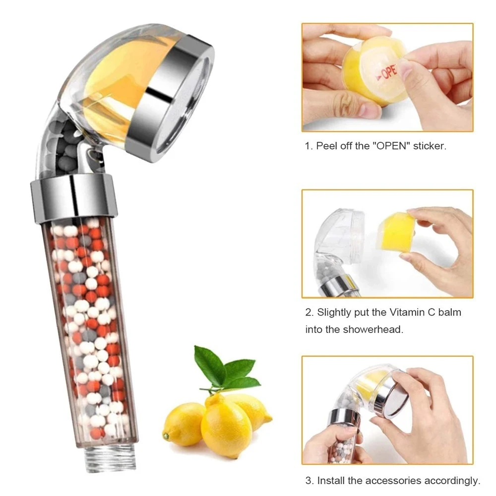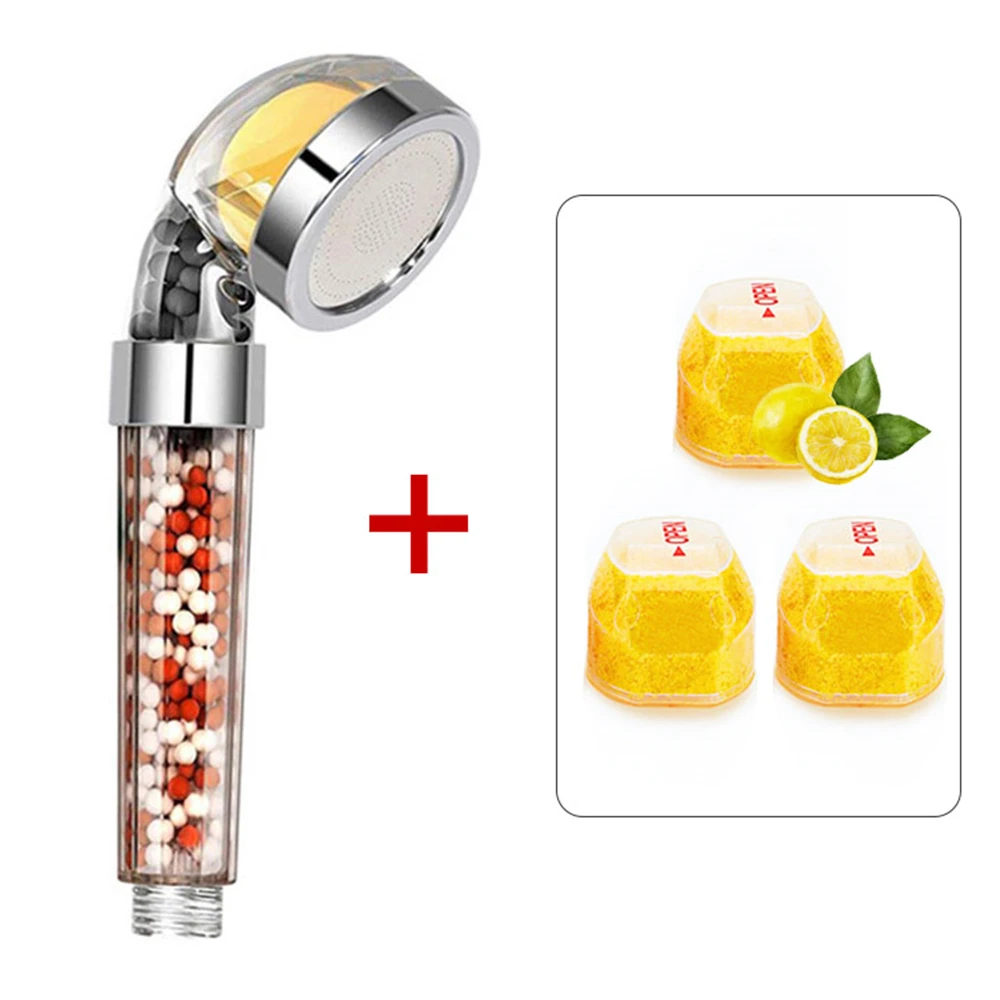 Насадка для душа с ароматом лимона, ручная ионная, с минеральными шариками, для душа, для спа, для экономии воды под высоким давлением, с фильтром витамина С