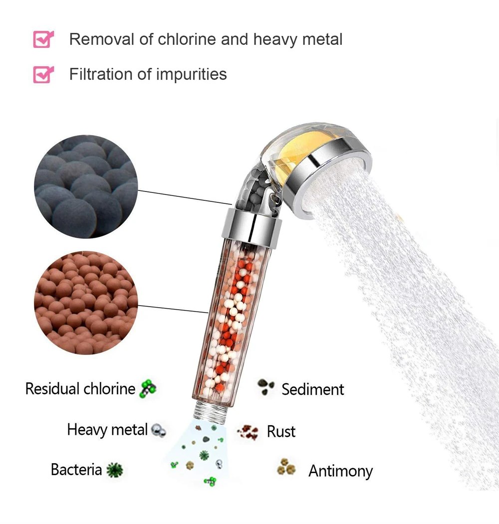 Насадка для душа с ароматом лимона для ванной комнаты, ручные ионные минеральные бусины для спа-душа, экономия воды высокого давления, насадка для душа с фильтром витамина С