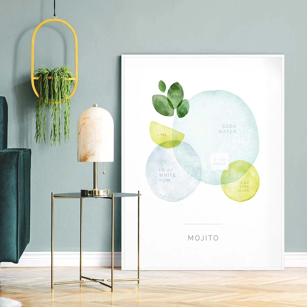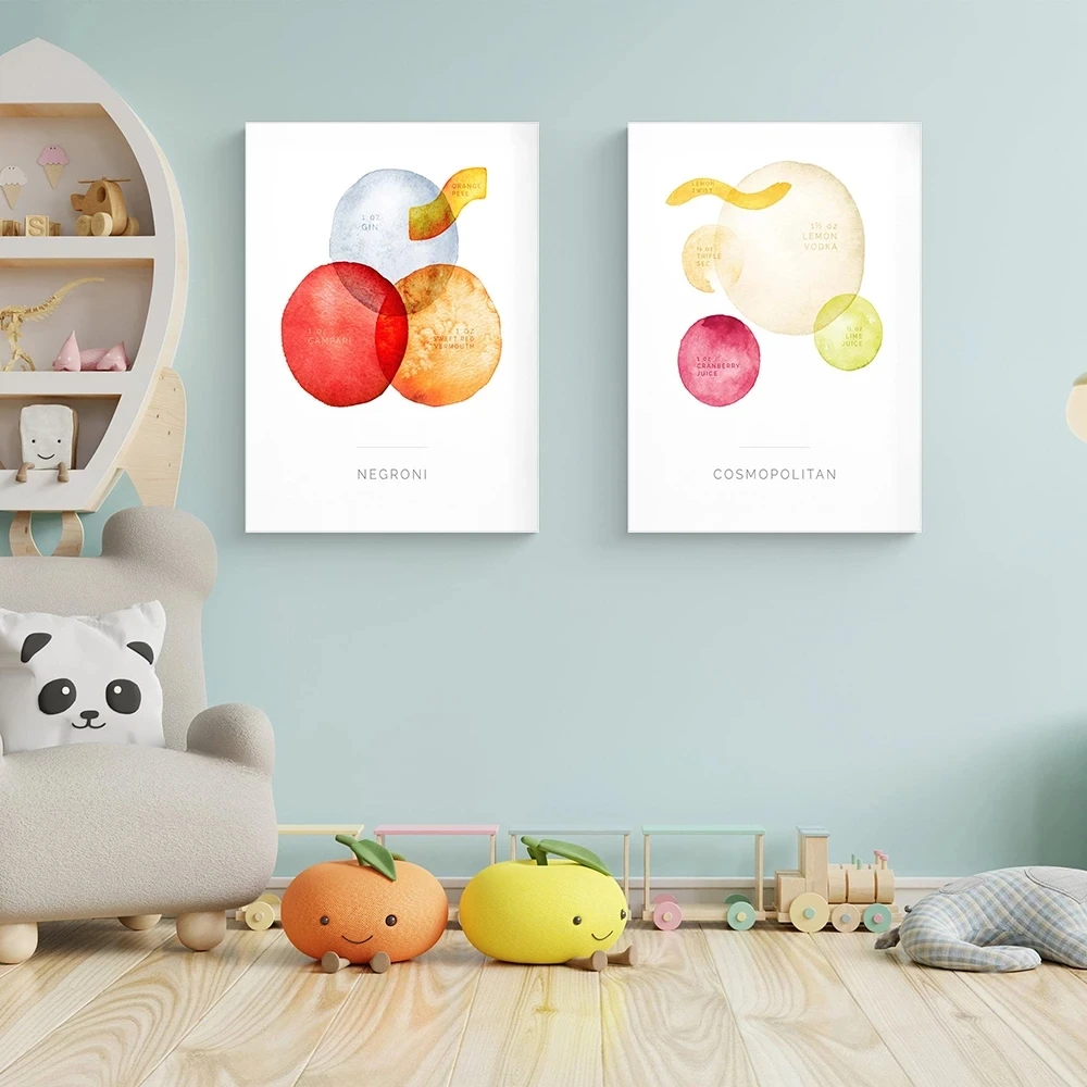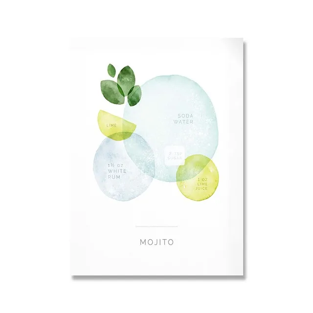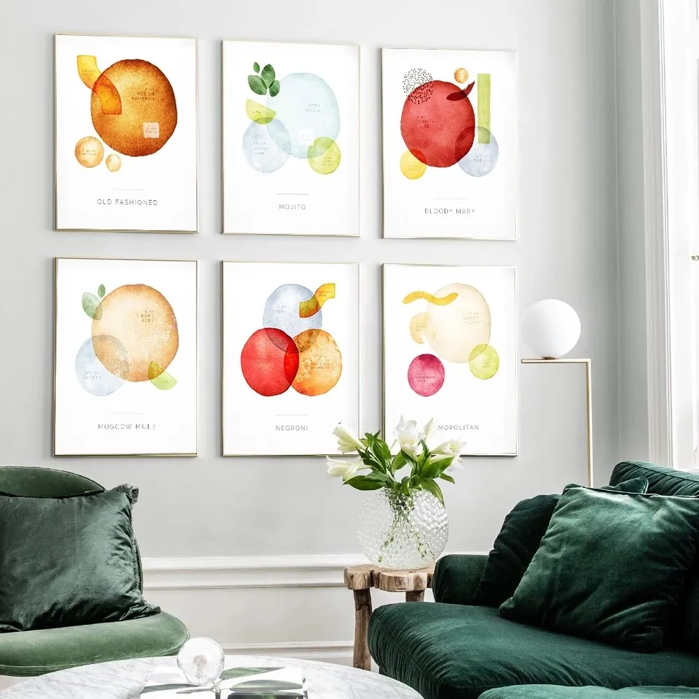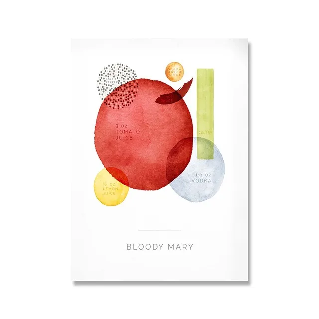Настенная картина Кровавая Мэри Московский мул, современный минималистичный акварельный рисунок, покраска на холсте для коктейлей, декор для кухни и бара
