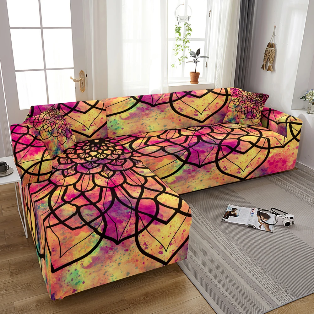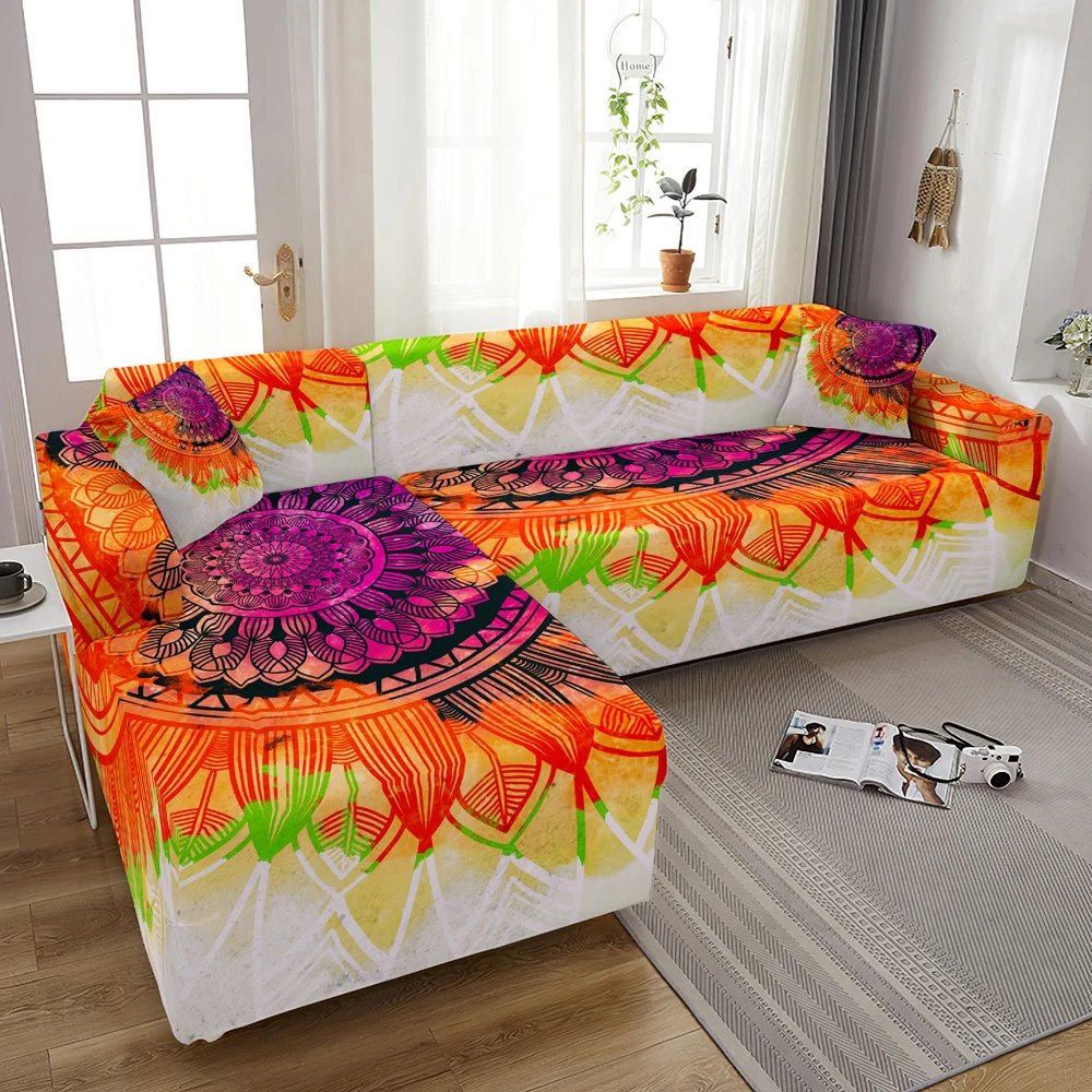 Чехлы для дивана в форме мандалы L для гостиной эластичный секционный угловой чехол для дивана богемный цветочный чехол для дивана на 1-4 места