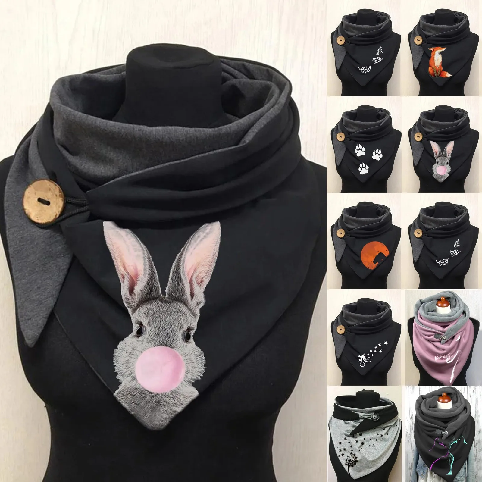 Новый зимний Женский шарф с пуговицами в стиле Харадзюку, милый Женский теплый шарф с принтом кота, шали, универсальный шарф, Женский шарф