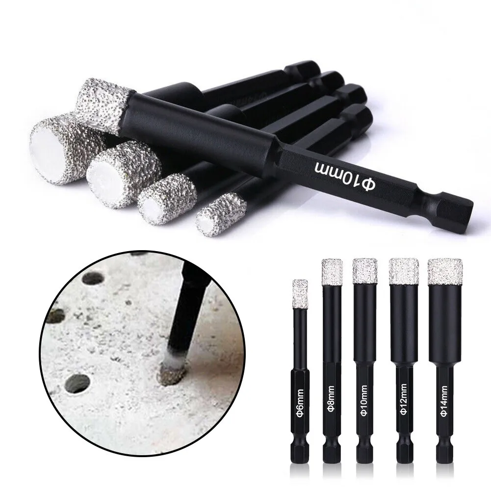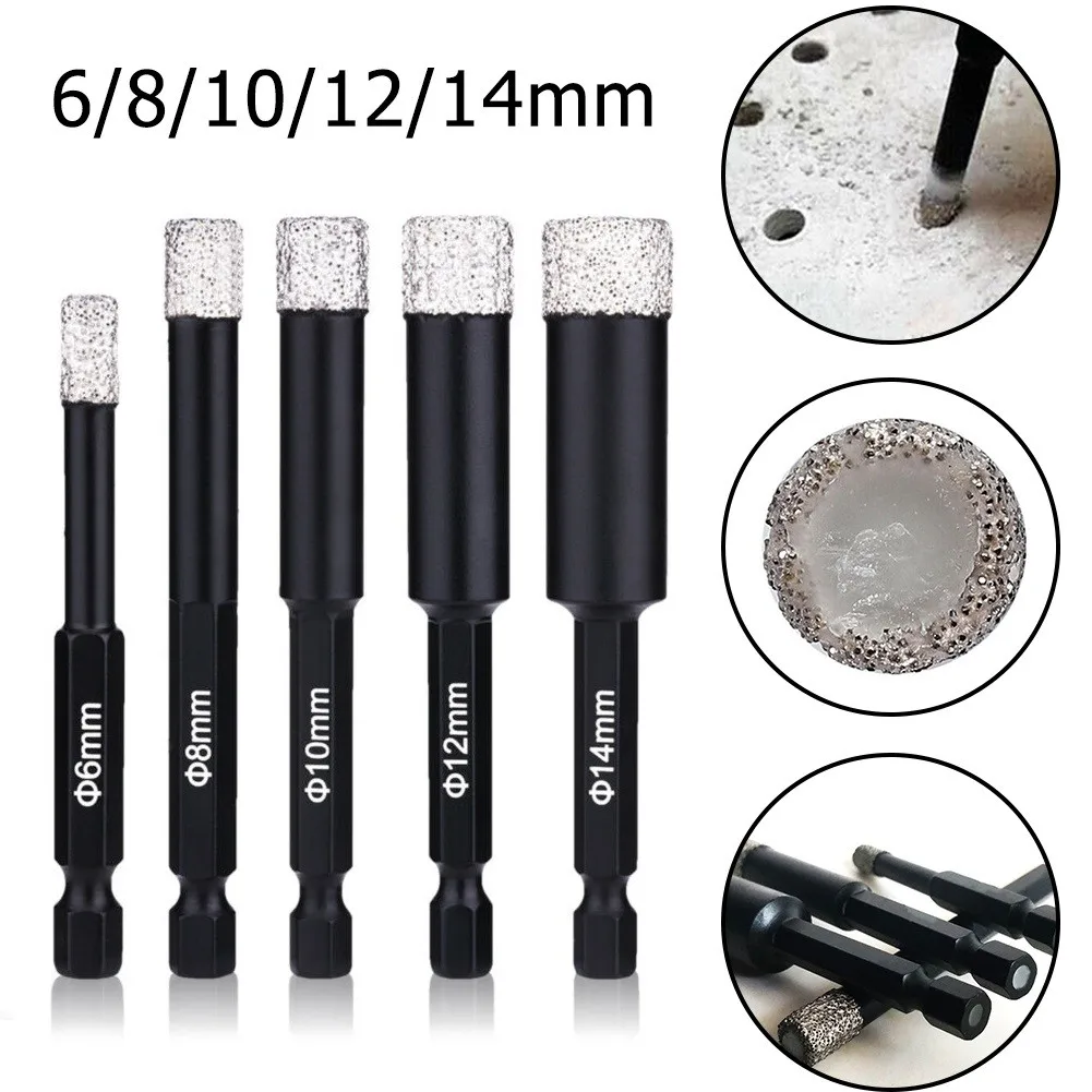 Алмазные сухие сверла, Набор насадок для дрели с шестигранным хвостовиком, для мрамора, керамической плитки, 1 шт., 68101214 мм