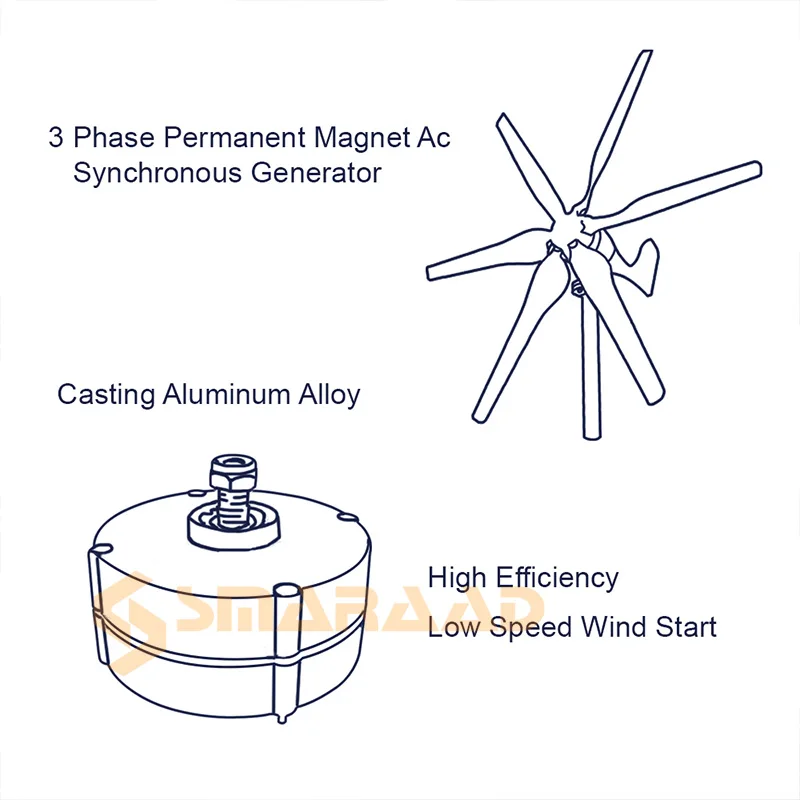 300 Вт, 400 Вт, 500 Вт, 600 Вт, 12 В, 24 В, 48 В, 3 фазы, безредукторный генератор с постоянным магнитом, генератор переменного тока, используется для ветряной турбины, водной турбины