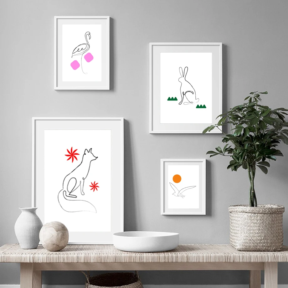 Абстрактная линия, кошка, собака, кролик, голубь, животное, искусст...