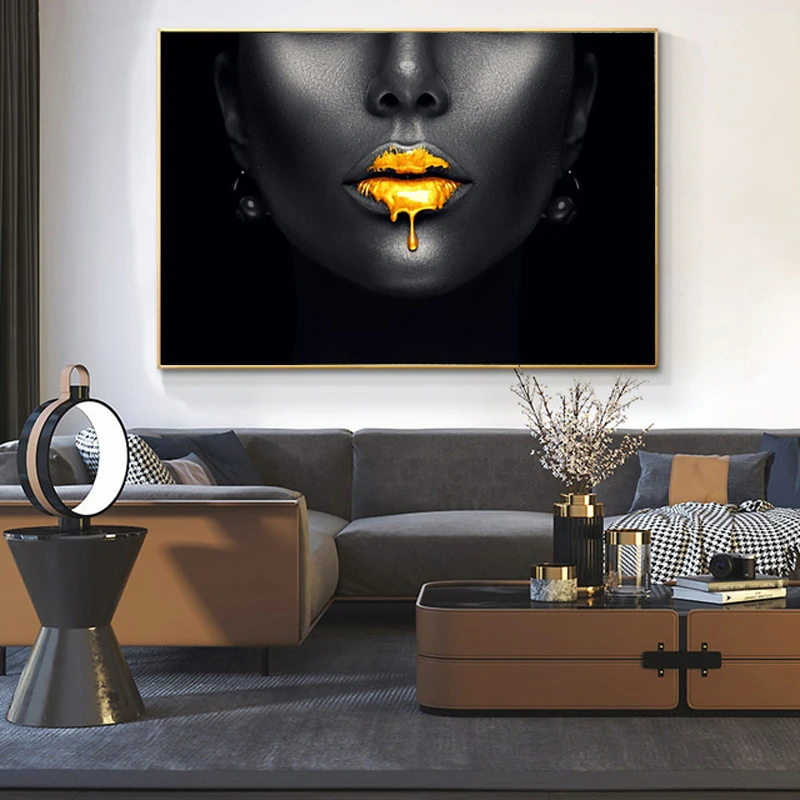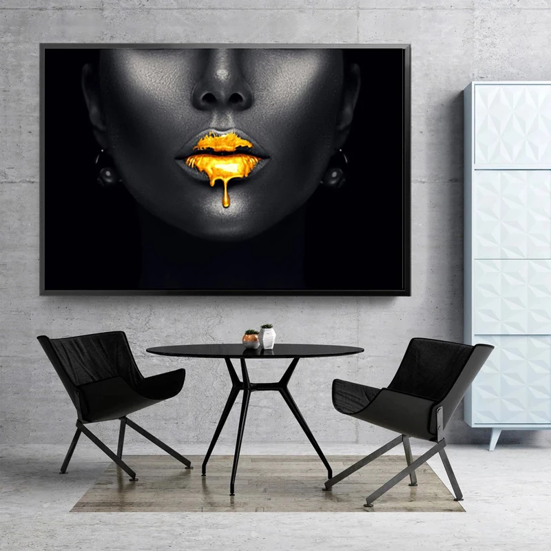 Картина на холсте с изображением сексуальной женщины, черные, Золотые губы, плакаты с изображением рта, настенные картины для гостиной, домашний декор, Серебряные Губы