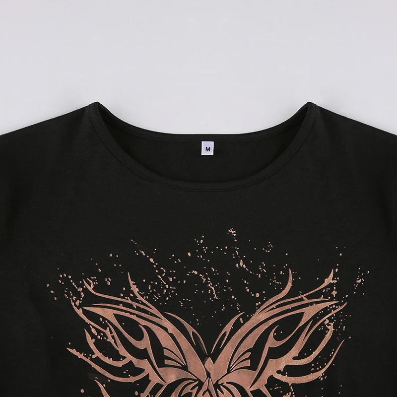 Футболка в стиле гранж с принтом бабочки, летняя уличная одежда, по...