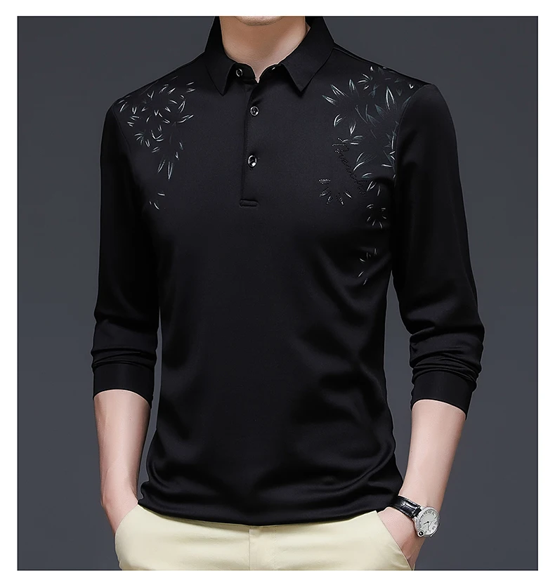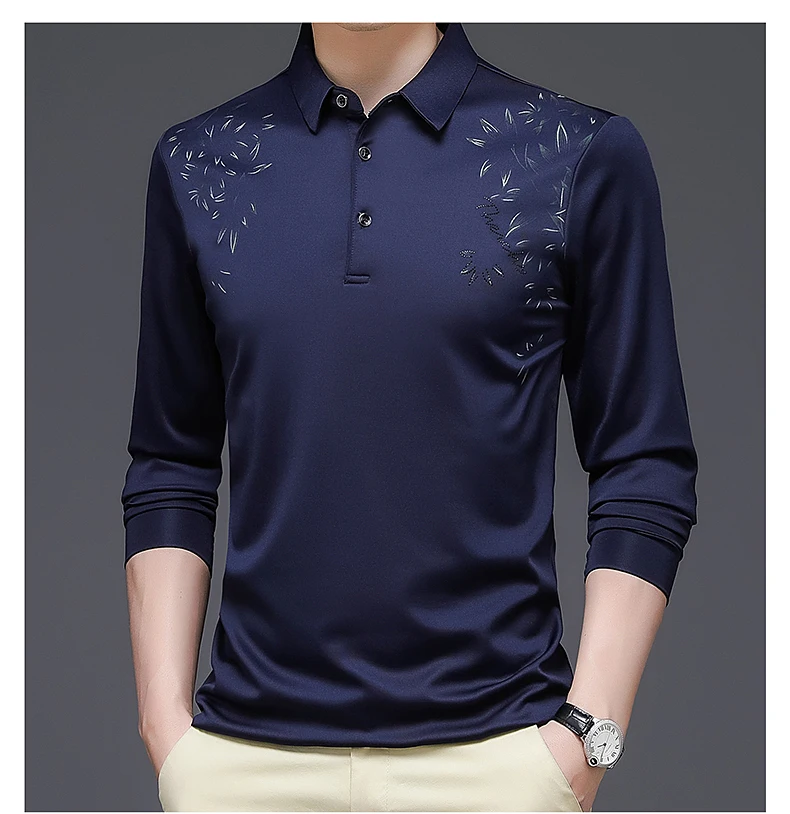 Мужские футболки-поло, весна-осень, с принтом, с длинным рукавом, приталенные, в Корейском стиле, повседневные, T1069