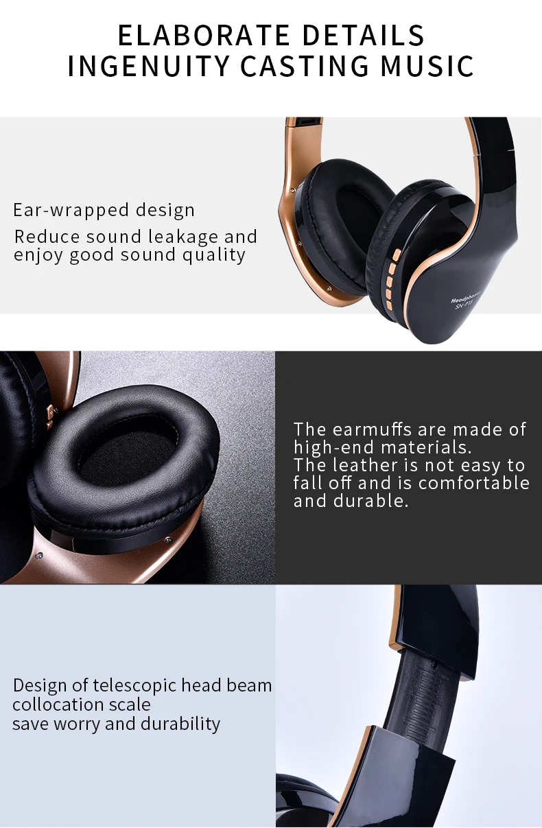 Function 5:Microphone Wireless Headphone Portable Bluetooth headset
