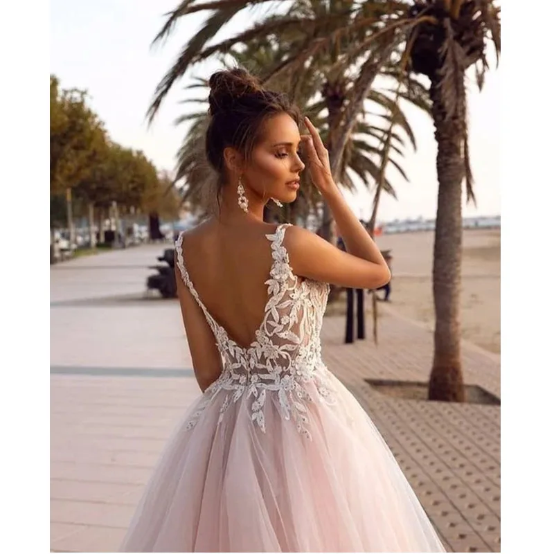 Женское свадебное платье с V-образным вырезом и открытой спиной