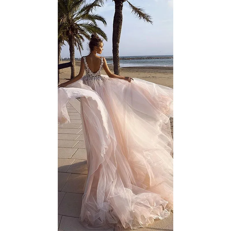 Женское длинное свадебное платье, Пляжное платье из тюля с открытым...