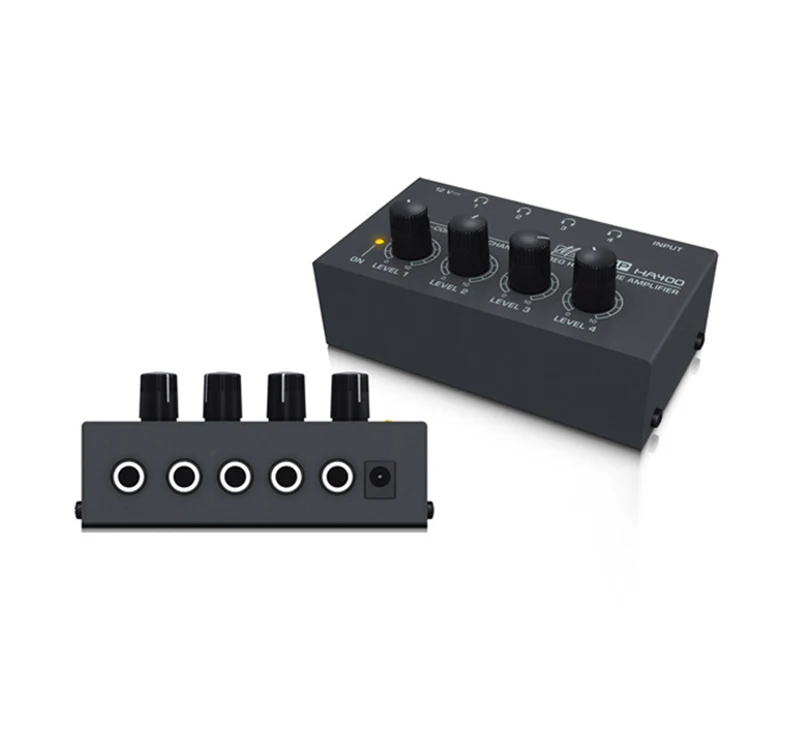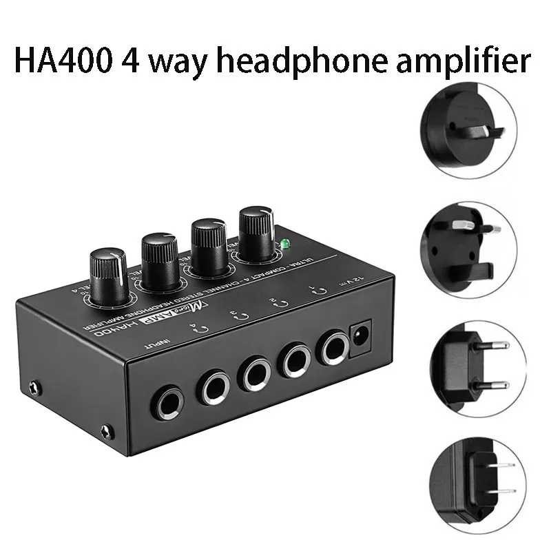4-канальный усилитель для наушников со стереозвуком и адаптером питания, черный ультракомпактный мини-усилитель для наушников HA400