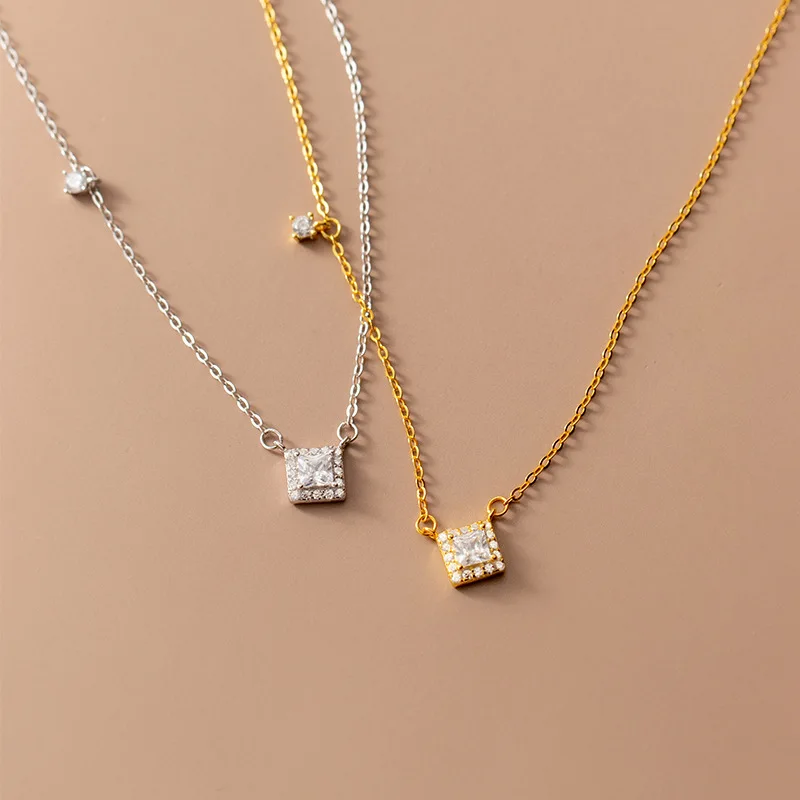 Цепочка женская из серебра 925 пробы, с квадратным кубическим цирконием, DA2342