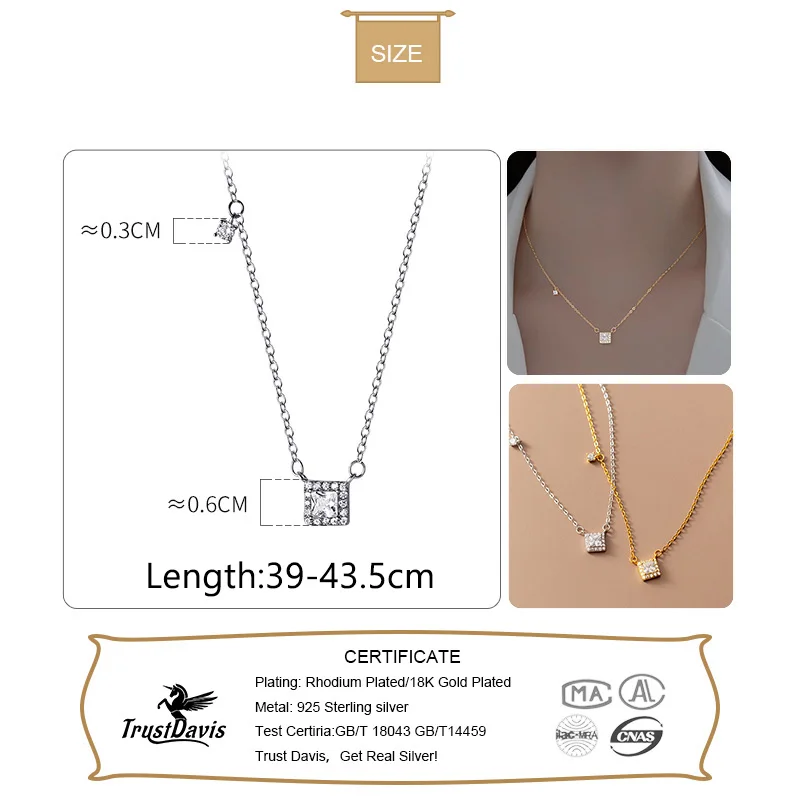 TrustDavis реальная фотография Серебряный квадрат CZ фотография раз...