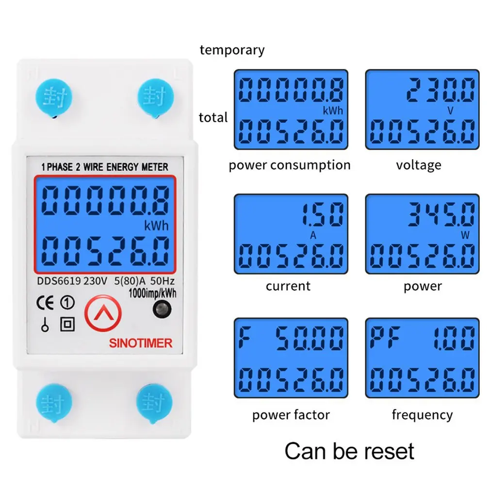 Цифровой Однофазный сброс на Din-рейку, измеритель нулевой энергии кВтч, измеритель напряжения и потребления электроэнергии, ваттметр, электричество, 220 В переменного тока